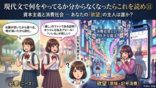 現代文あるある資本主義と消費社会 ― あなたの「欲望」の主人は誰か?現代文あるある⑪ あなたの「欲望」の主人は誰か? 「新しいスマホが欲しい」 「あのブランドの服を着て、自分...2026.03.29現代文あるある高校生/大学受験