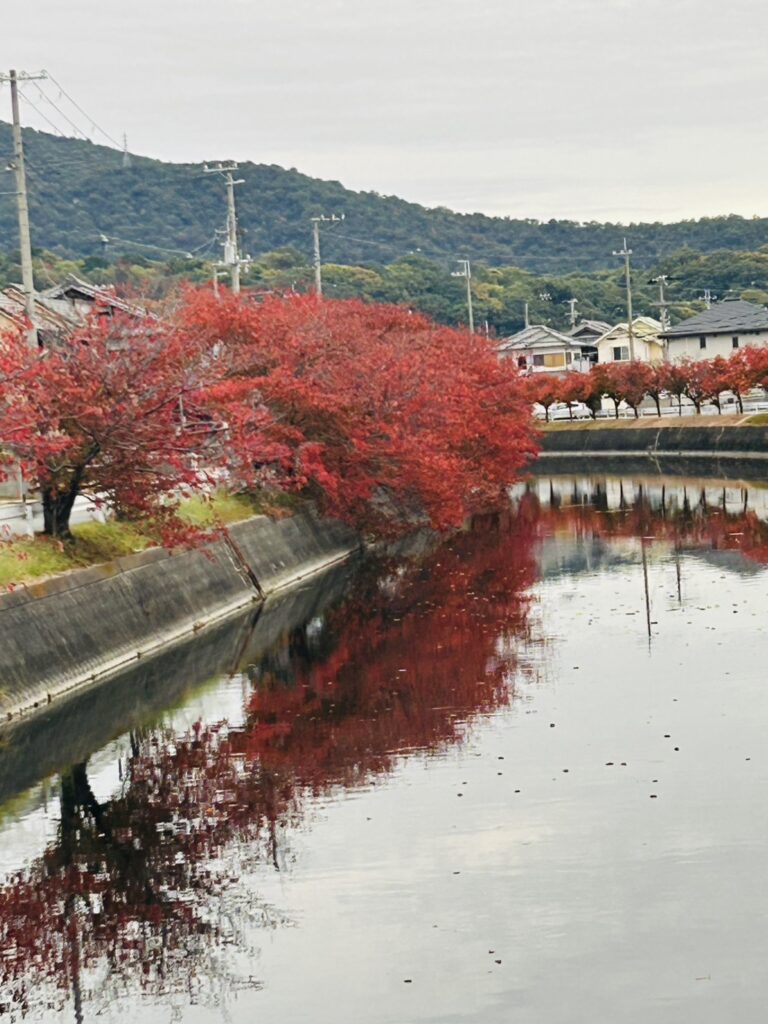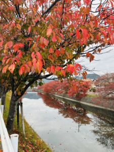 紅葉した桜の木が川に映ってとても綺麗でした。
